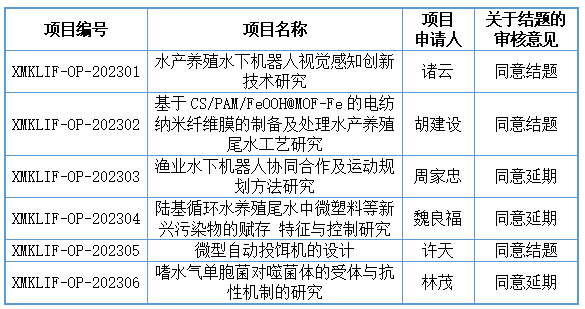2023年度廈門市智慧漁業(yè)重點實驗室開放課題結(jié)題意見表