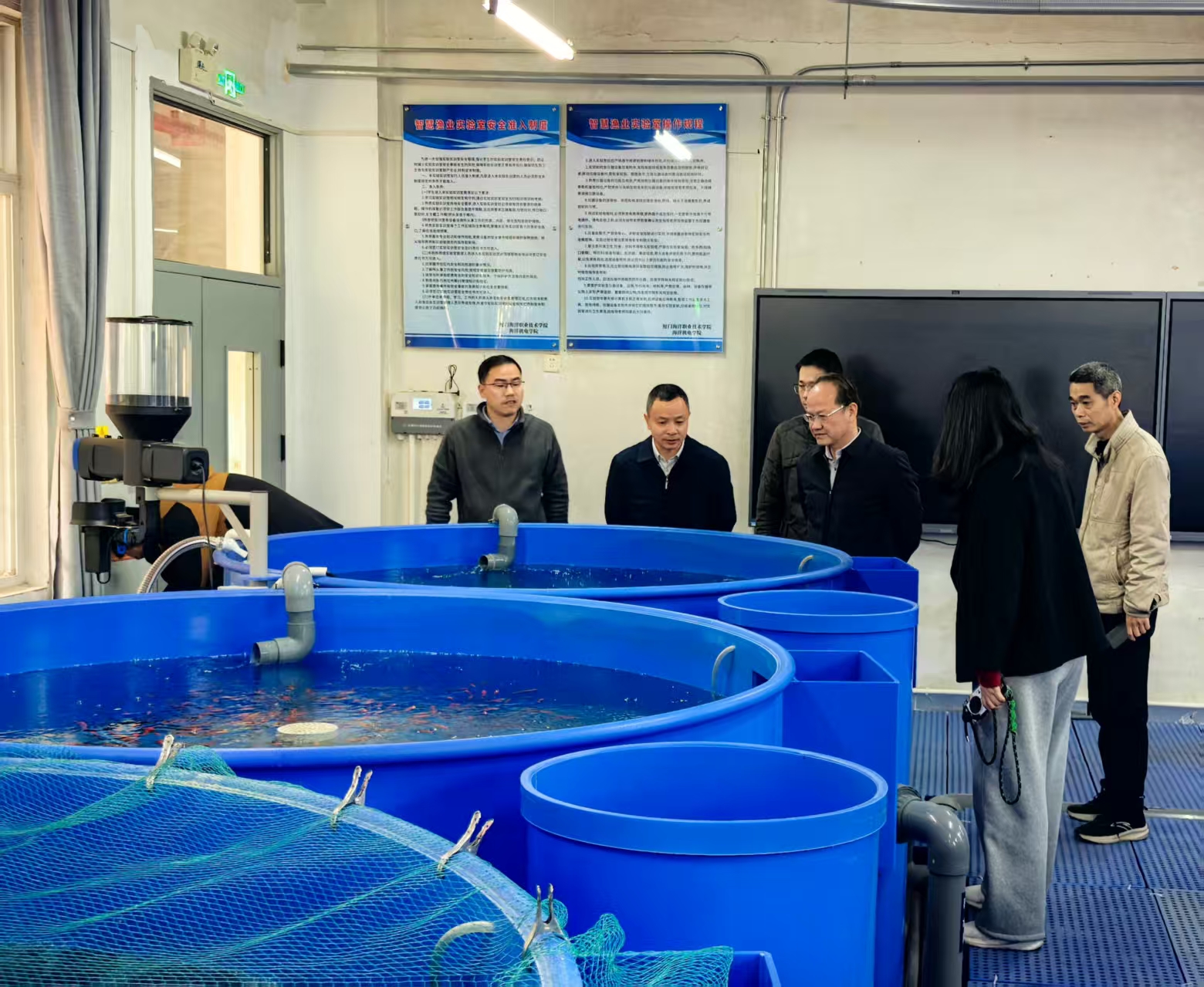 劉校長一行先后走訪了無人化漁場實驗基地、智慧漁業(yè)重點實驗室、學校西門、校園擴建工地、監(jiān)控室、消控室、一站式學生社區(qū)、學生宿舍、食堂等重點場所,認真檢查了安全設施運行維護情況和日常安全管理制度落實情況。劉光明特別強調(diào),針對學生宿舍安全工作,相關部門要專題研究宿舍樓一樓防盜窗應急通道改造方案,進一步優(yōu)化設計,切實保障應急疏散通道的暢通有效,全力筑牢校園安全屏障。